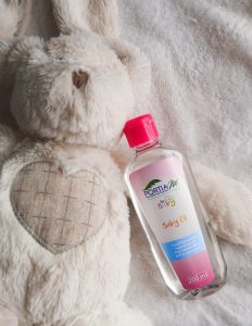I always add the PortiaM Baby Oil in the bath water for extra moisture for the skin. I allow my little one to help me with that. It is part of our routine and this step never gets skipped. Even if I forget, he reminds me.